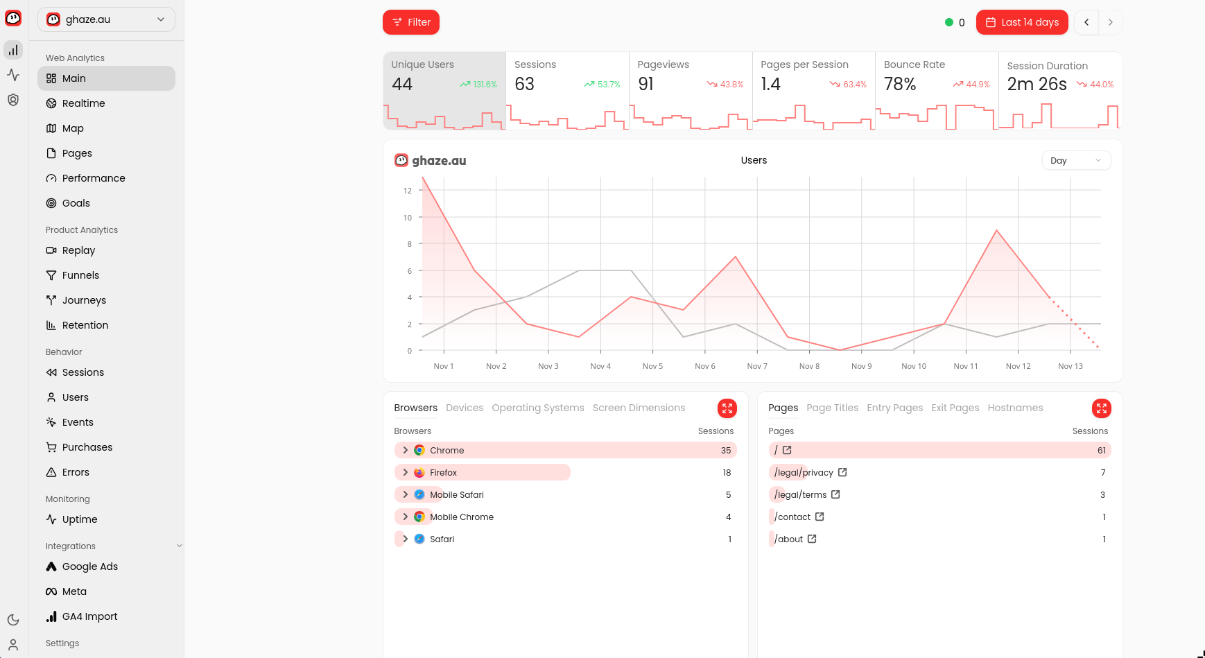 We replaced GA4 and Clarity across all our client sites with Ghaze, setup took minutes, and our reports finally make sense again.